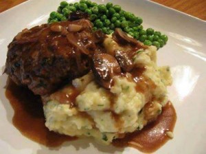 4.When patties are done, make gravy according to package instructions. Pour brown gravy on top and enjoy with some mashed potatoes!